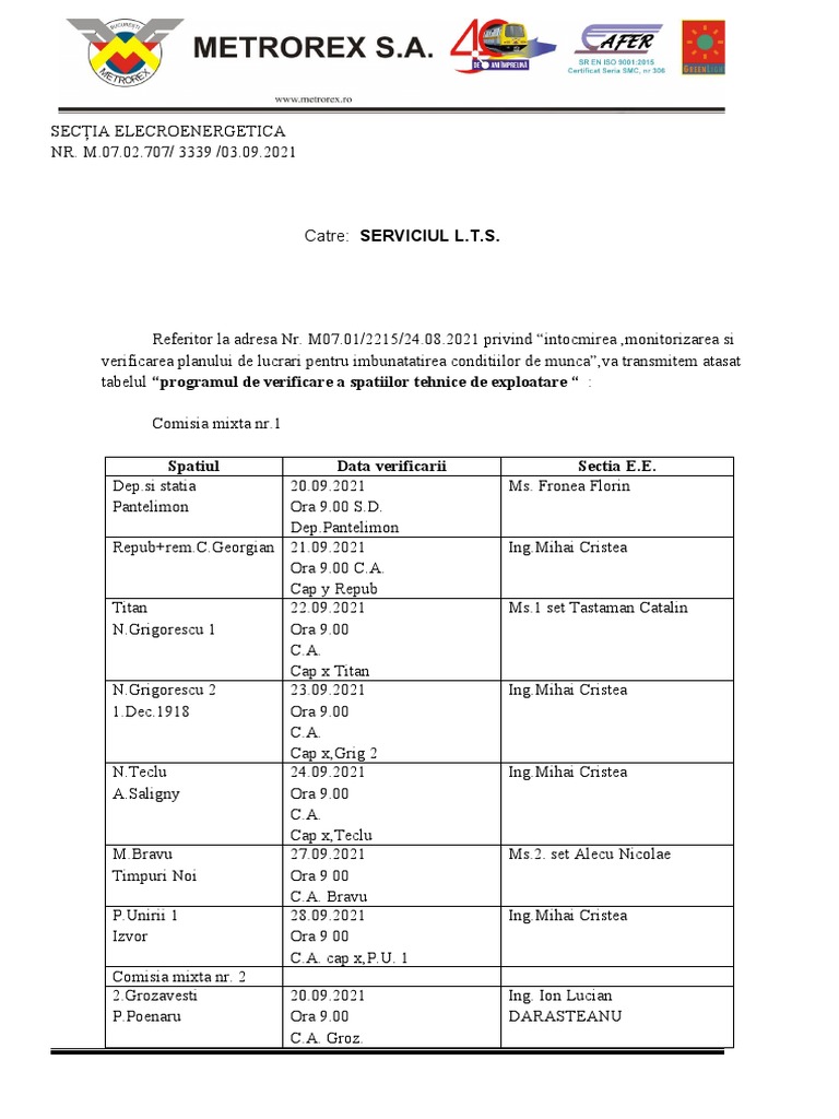 verificarea planului de lucrari pentru imbunatatirea conditiilor de munca”,va transmitem atasat