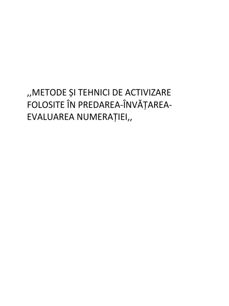 ,,metode Și Tehnici de Activizare Folosite În Predarea-Învățarea-Evaluarea Numerației