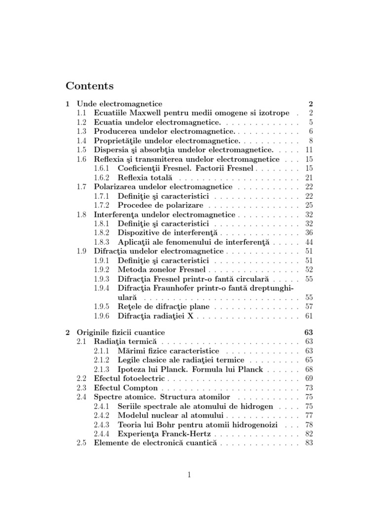 1.8.3 Aplicaţii ale fenomenului de interferenţă . . . . . 44