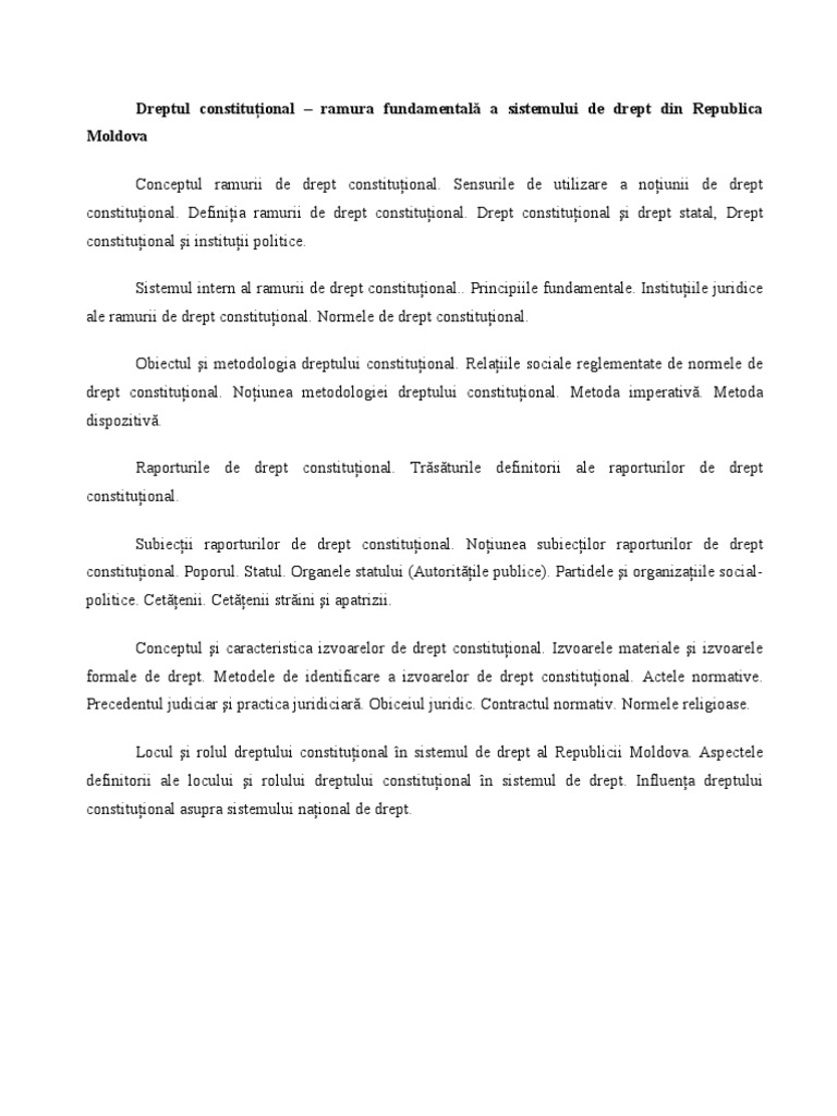 constituţional. Conţinutul disciplinei dreptului constituţional. Structura disciplinei. Sarcinile studierii