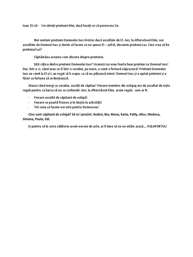 Noi suntem prietenii Domnului Isus Hristos dacă ascultăm de El. Aici, la Afterschool Elim, noi