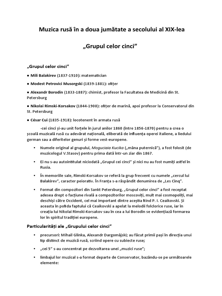 • „cei 5” s-au concentrat pe dezvoltarea unei „muzici ruse”;