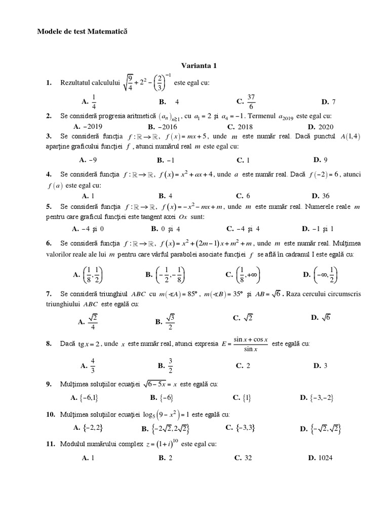 14. Pe mulţimea numerelor reale se defineşte legea de compoziţie asociativă x y x y 1 . Rezultatul