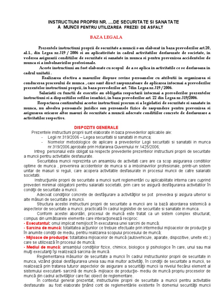 Prezentele instructiuni proprii de securitate a muncii s-au elaborat in baza prevederilor art.20,