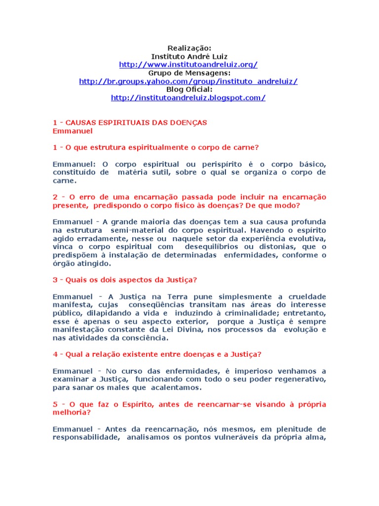 1 - CAUSAS ESPIRITUAIS DAS DOENÇAS