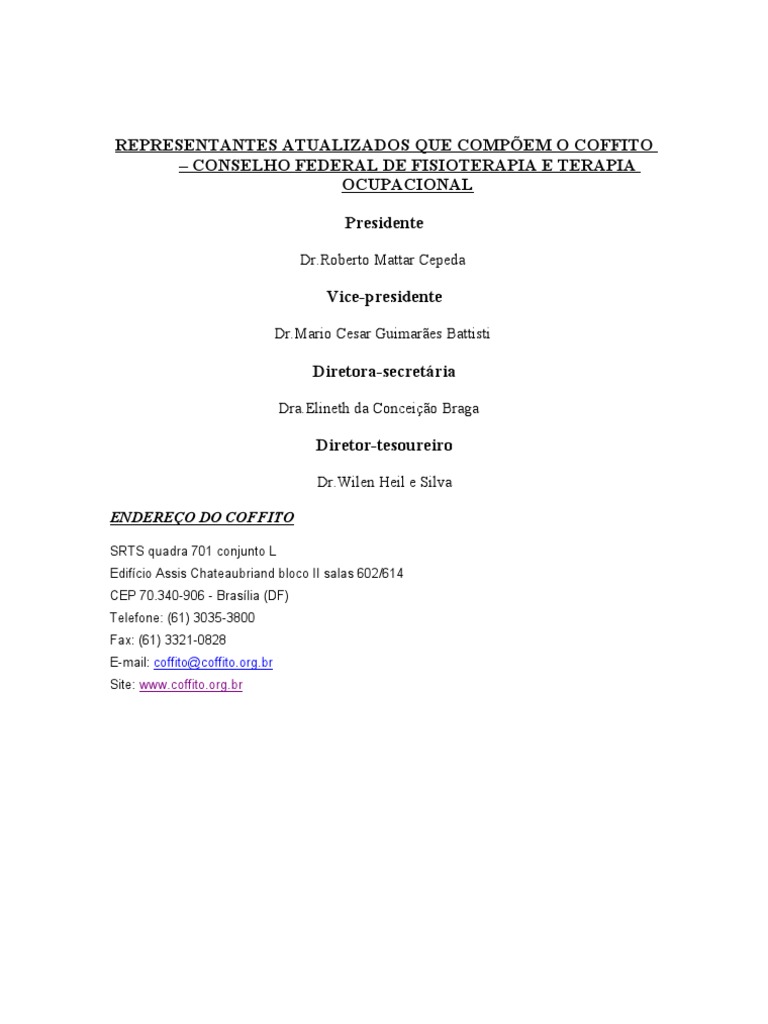 ENDEREÇO DO COFFITO