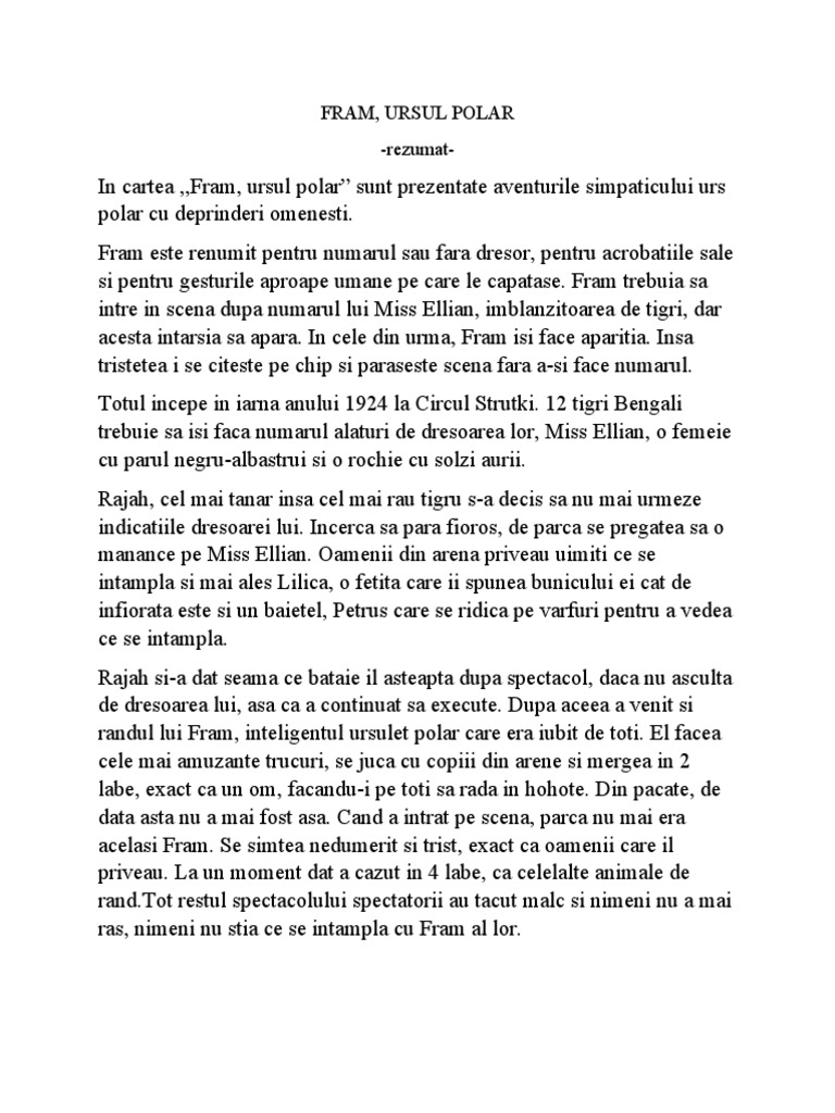 In cartea ,,Fram, ursul polar” sunt prezentate aventurile simpaticului urs