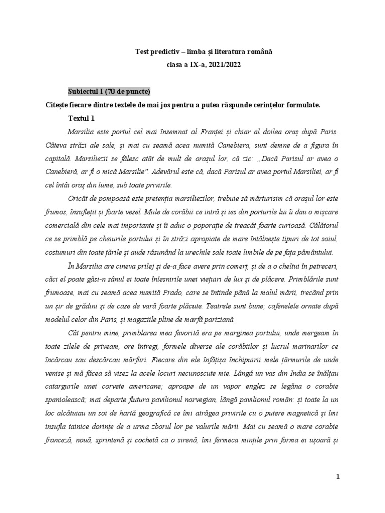 textului – 1 punct, proprietatea termenilor folosiți – 1 punct, corectitudinea gramaticală – 1