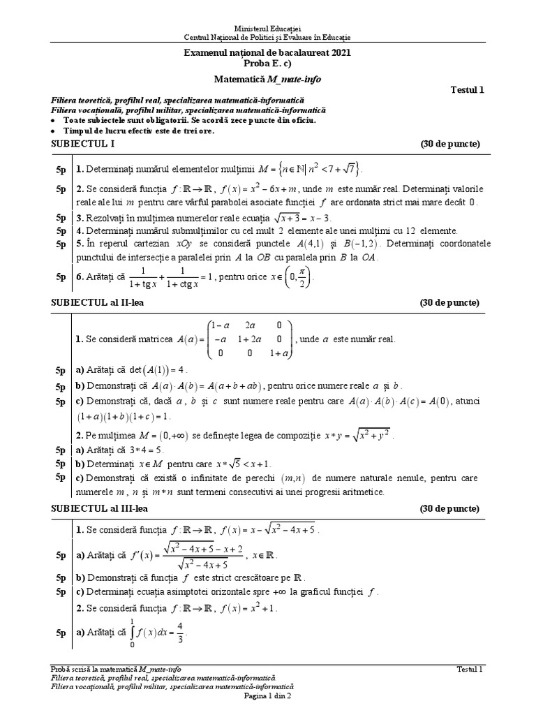 5p c) Demonstrați că există o infinitate de perechi m, n de numere naturale nenule, pentru care