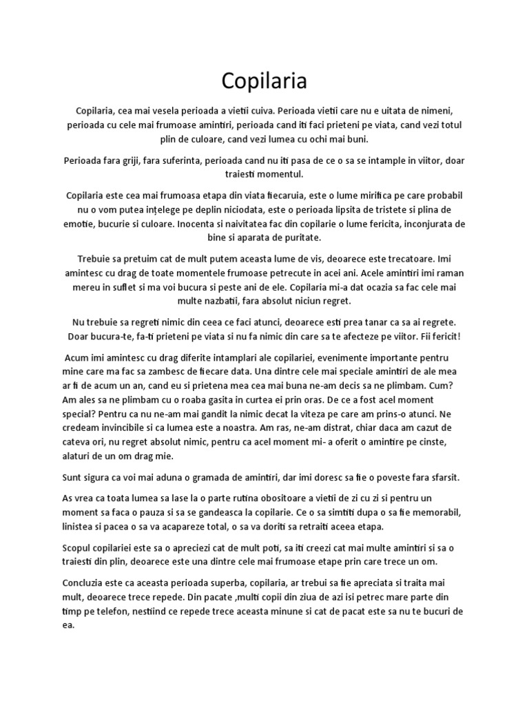 Concluzia este ca aceasta perioada superba, copilaria, ar trebui sa fie apreciata si traita mai