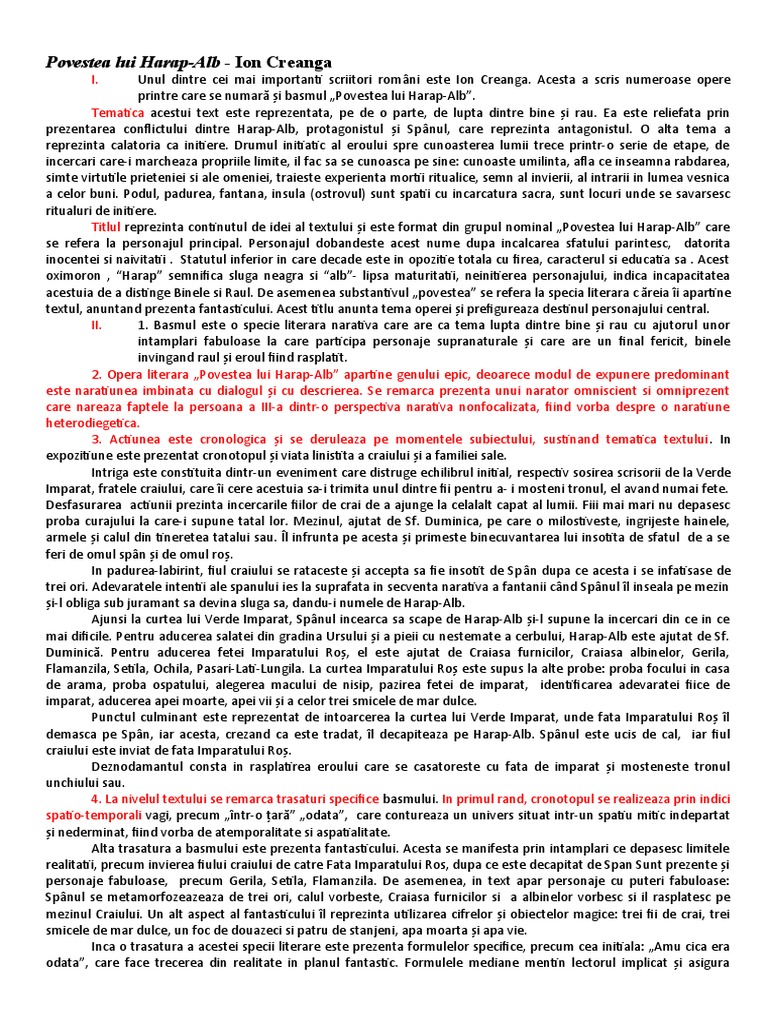 III. In concluzie, opera literara „Poveste lui Harap-Alb” ocupa un loc aparte in literatura romana prin