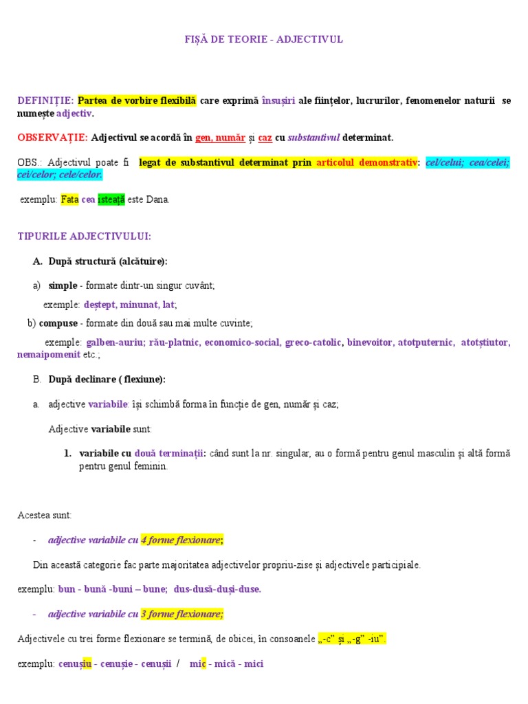 FIȘĂ DE TEORIE - ADJECTIVUL