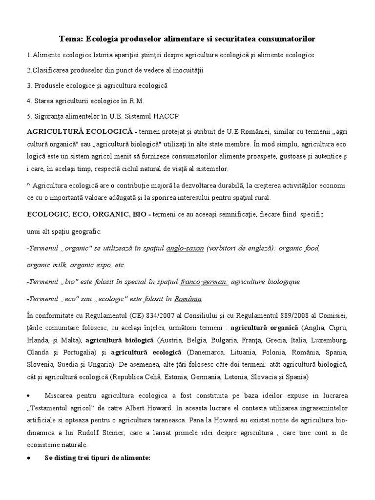 c) alimente ecologice sau organice- sunt produse de origine animala sau vegetala care au fost obtinute