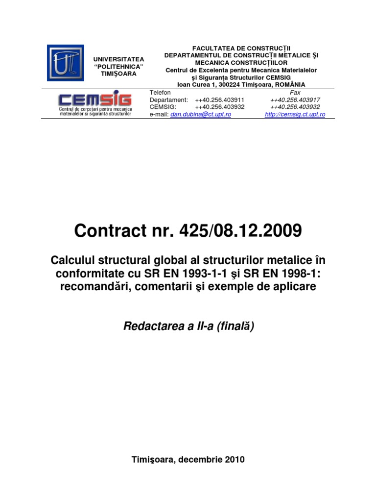 dinamice (seismice). Pentru redactarea lui, s-a folosit ca bază normativă SR EN 1993-1-