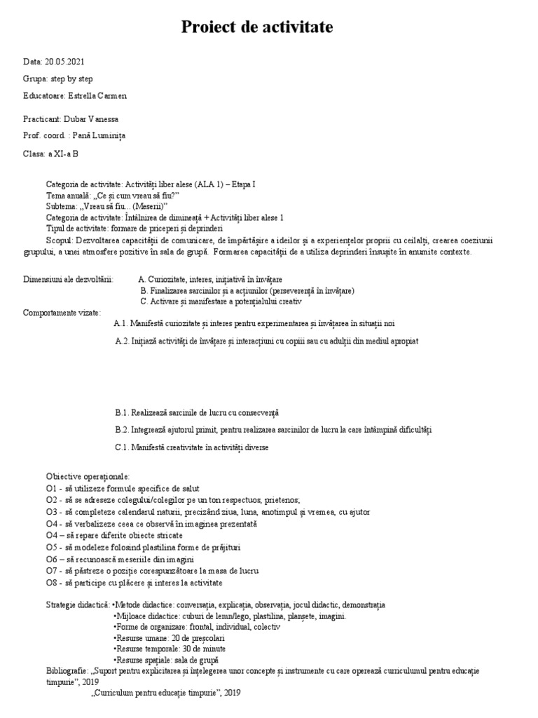Proiect de activitate