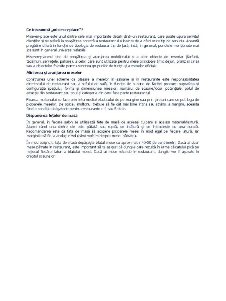 clienților și se referă la pregătirea corectă a restaurantului înainte de a oferi orice tip de serviciu. Această