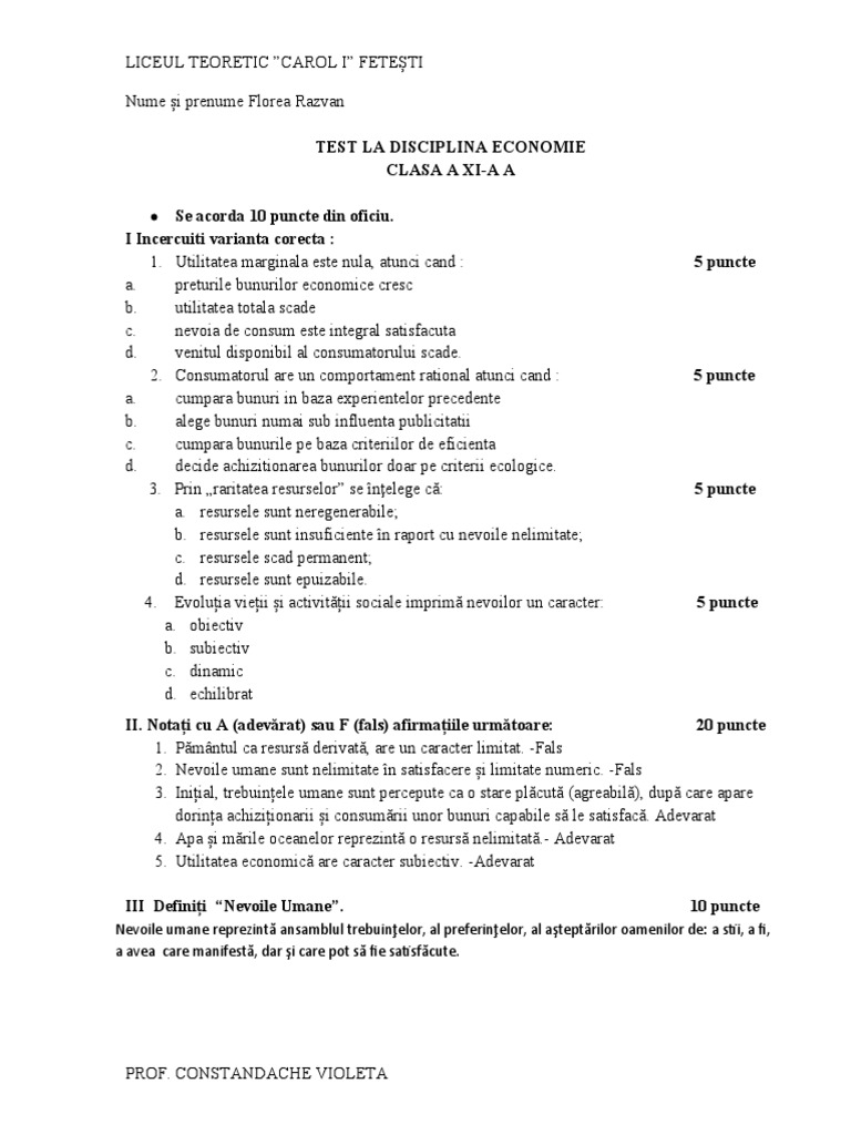 Se acorda 10 puncte din oficiu.