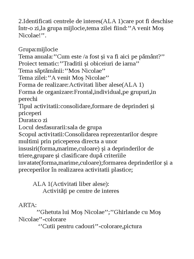 Identificati centrele de interes(ALA 1)care pot fi deschise