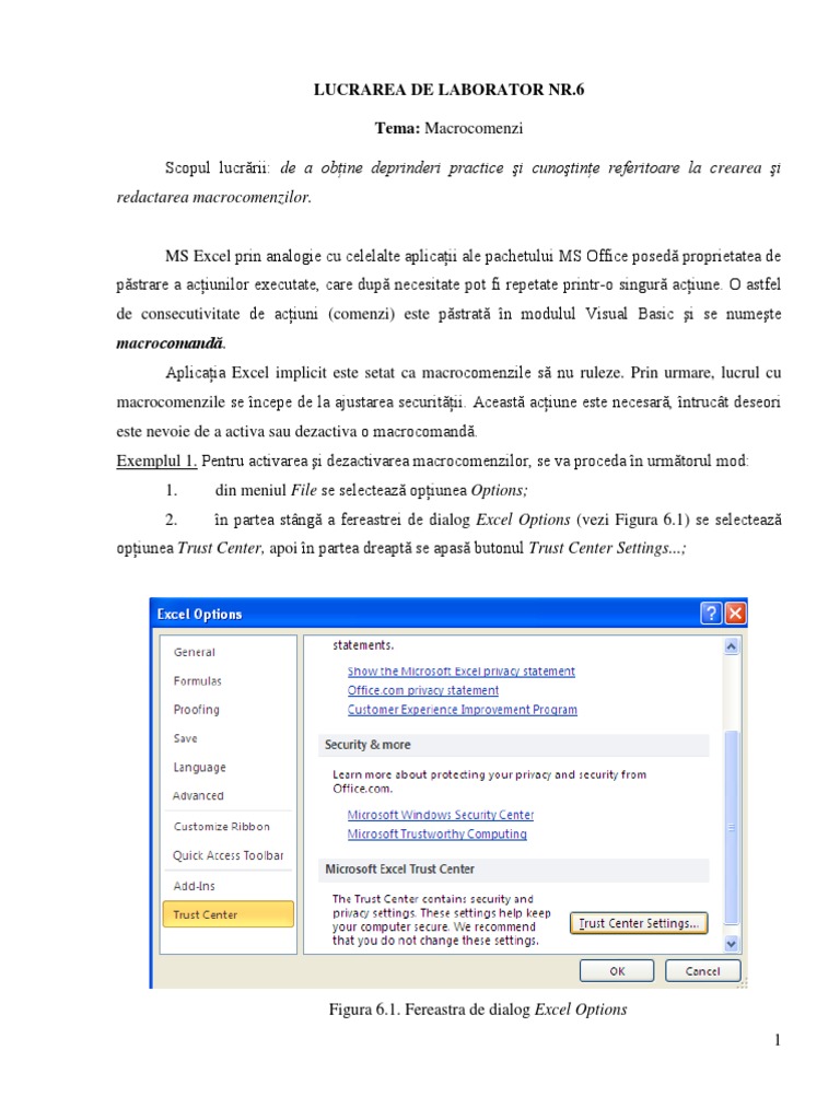 - Disable all macros without notification (nu se acordă încredere macrocomenzilor.