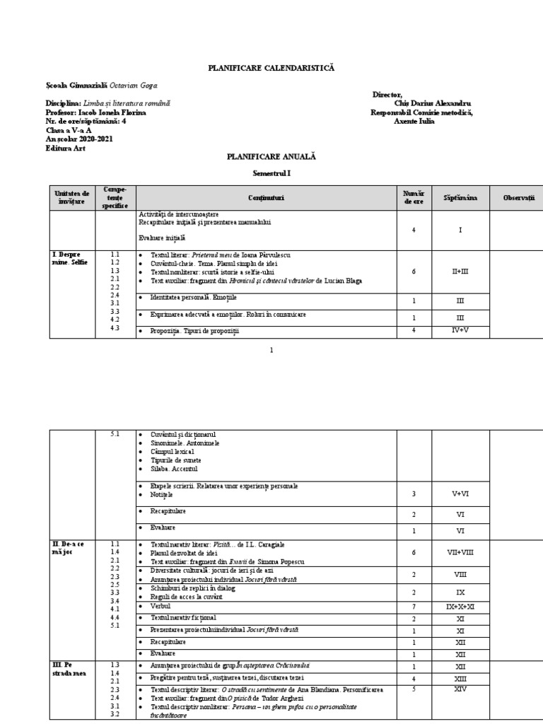 Planificare 5 ART