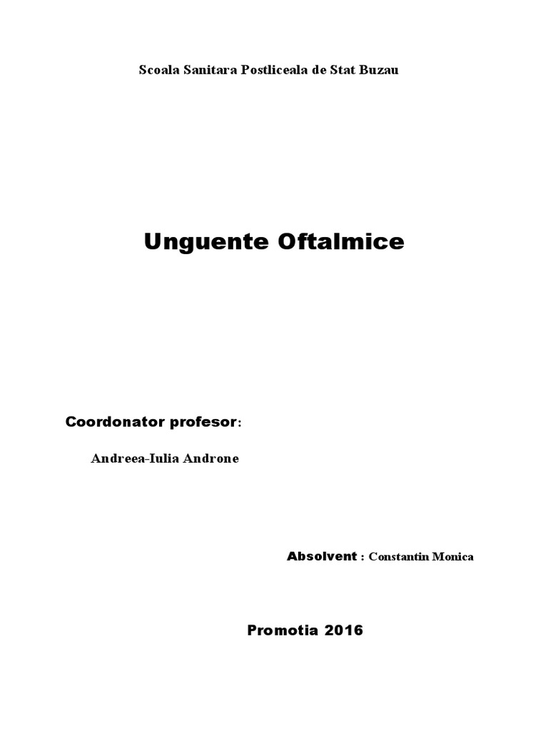 Tema proiectului meu este denumită „Unguente oftalmice” şi este rezultatul