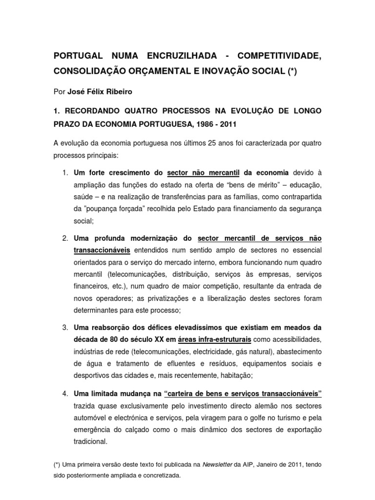 PORTUGAL NUMA ENCRUZILHADA - COMPETITIVIDADE,