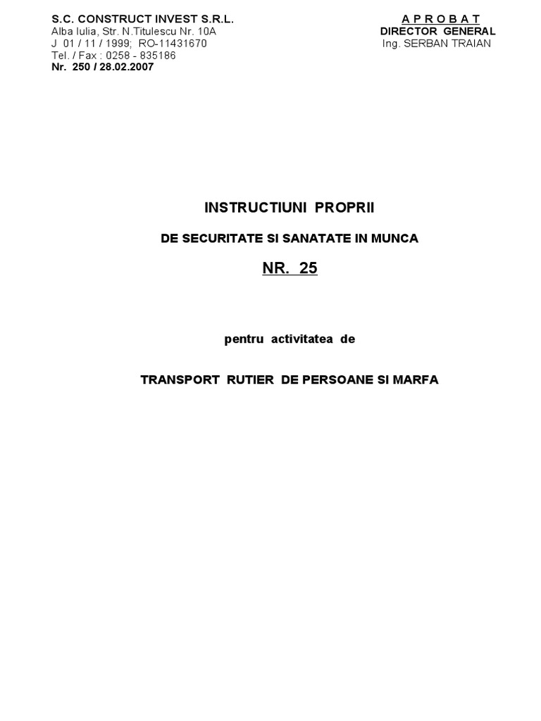 Instructiuni SSM - Transport Rutier Intern