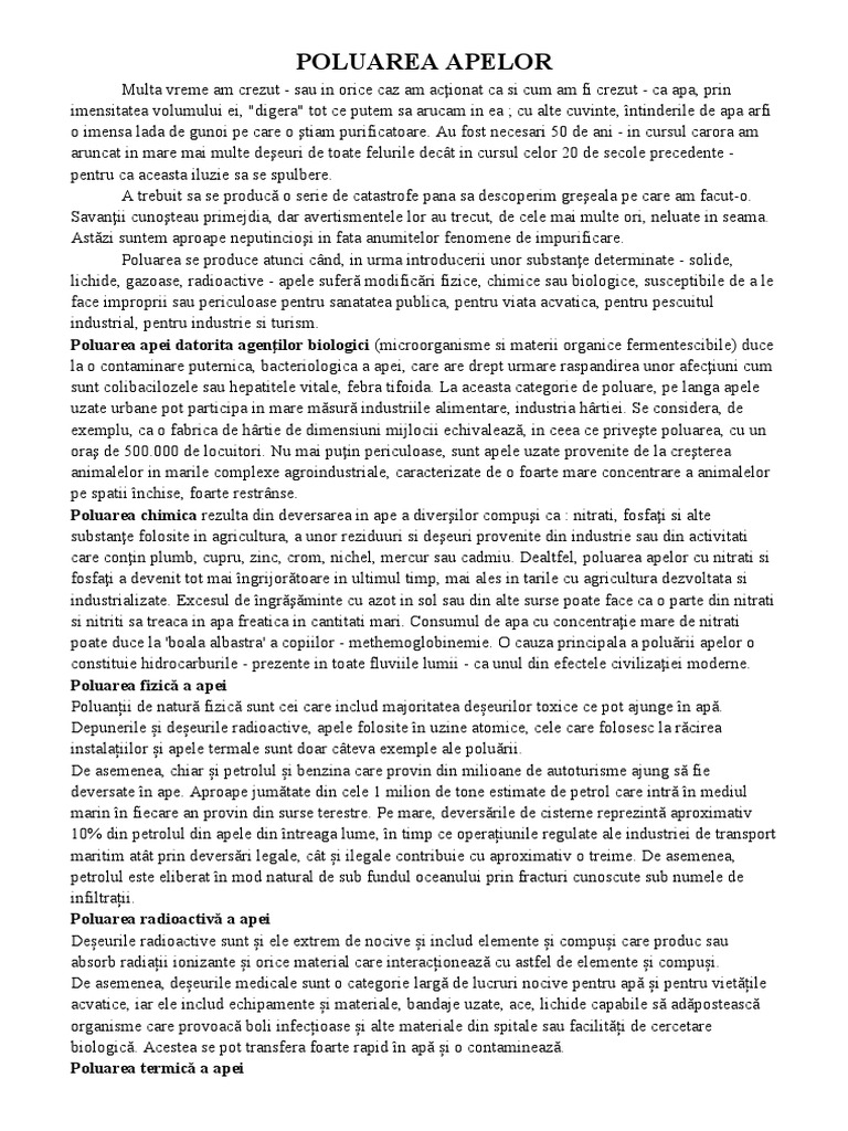 lichide, gazoase, radioactive - apele suferă modificări fizice, chimice sau biologice, susceptibile de a le