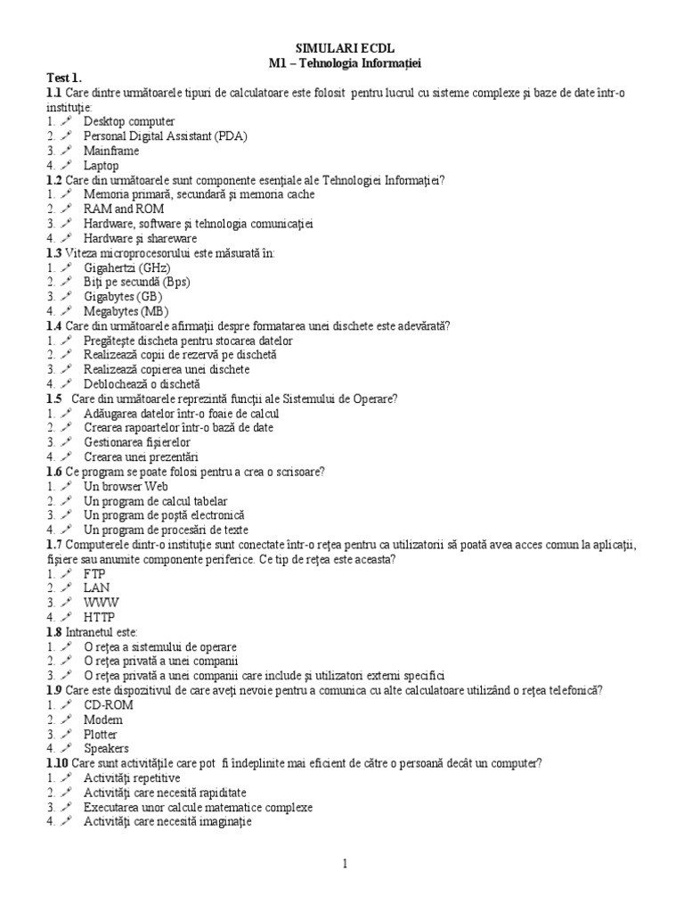 1.7 Computerele dintr-o instituţie sunt conectate într-o reţea pentru ca utilizatorii să poată avea acces comun la aplicaţii,