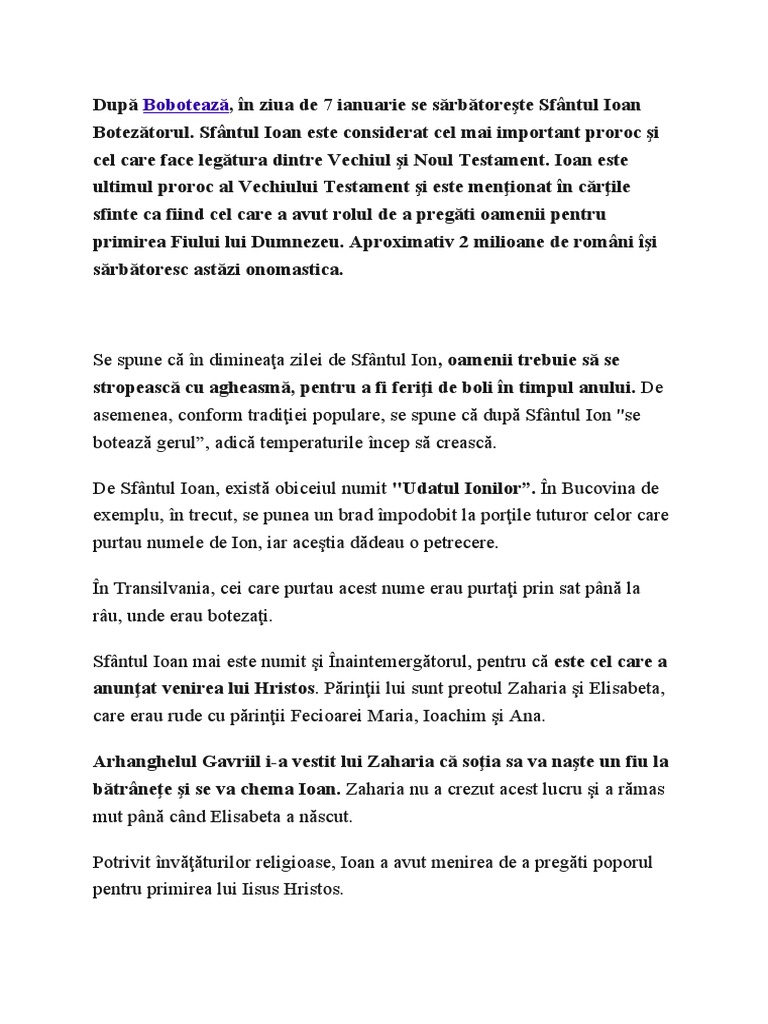 Bobotează, în ziua de 7 ianuarie se sărbătoreşte Sfântul Ioan