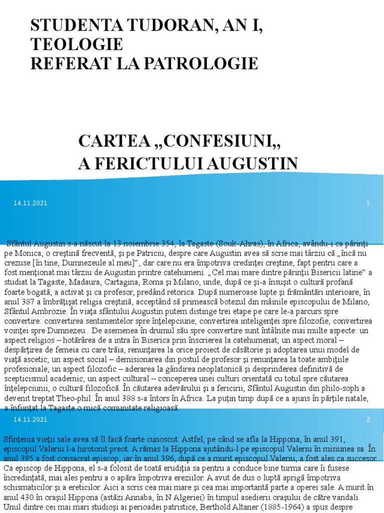 1. Augustin, Confesiuni, Humanitas, Bucureşti 1998