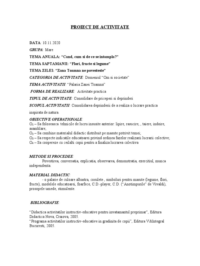 PROIECT DE ACTIVITATE