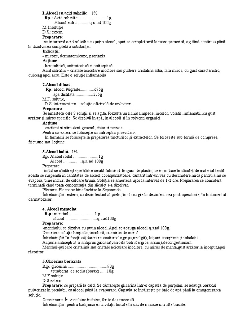 -se triturează acid salicilic cu puţin alcool, apoi se completează la masa prescrisă, agitând continuu până