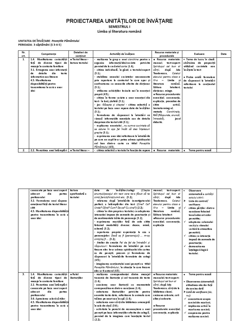 despre o povestire/ conceptului de personaj (2.4); literatura română, cadrului didactic; se lasă