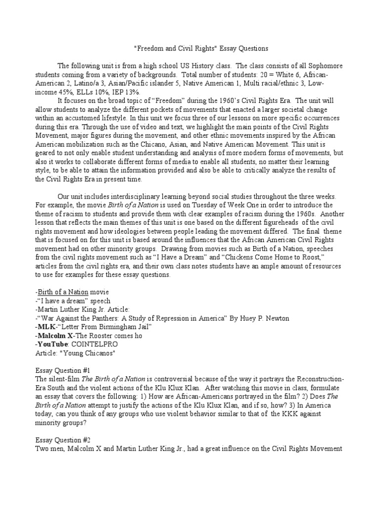 articles from the civil rights era, and their own class notes students have an ample amount of resources