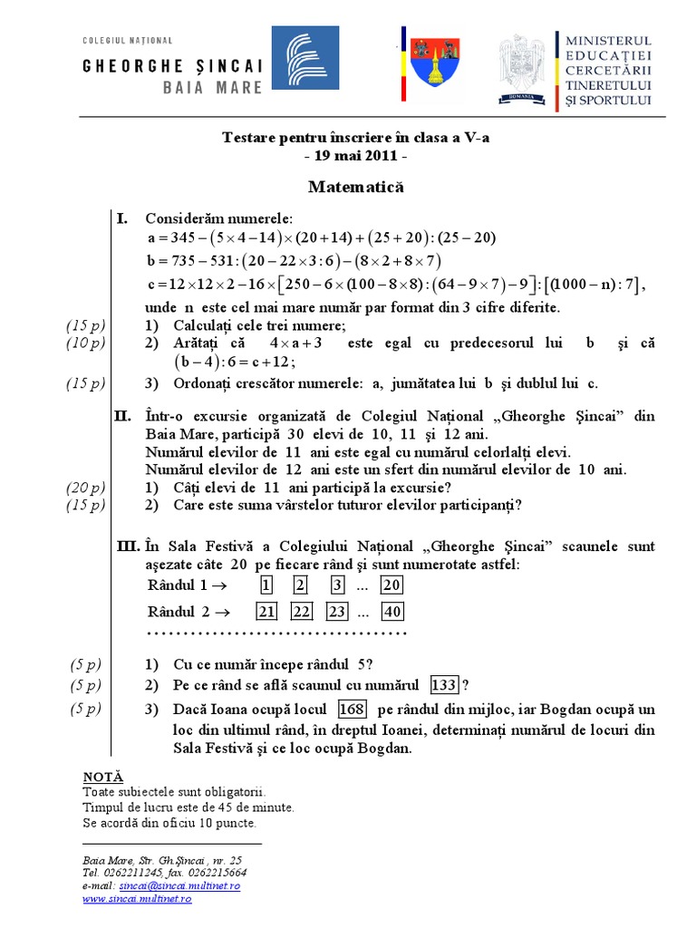(10 p) 2) Arătaţi că 4 × a + 3 este egal cu predecesorul lui b şi că