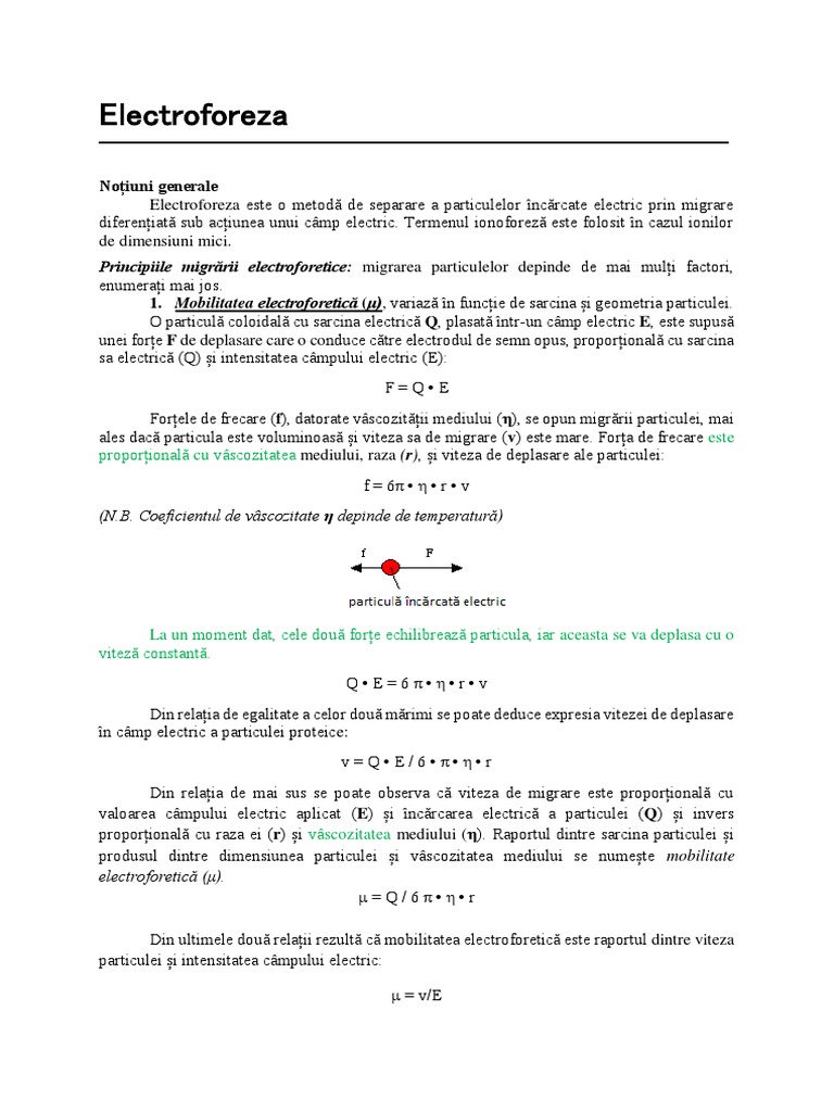 1. Mobilitatea electroforetică (μ), variază în funcție de sarcina și geometria particulei.