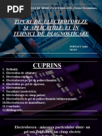poliacrilamidă, gelul de agaroză și gelul de amidon. Electroforeza se poate efectua pe bandă
