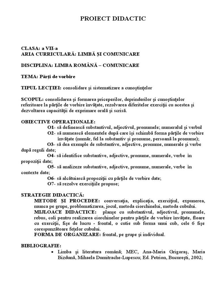 O3 referitor la părţile de vorbire învăţate: problemati-