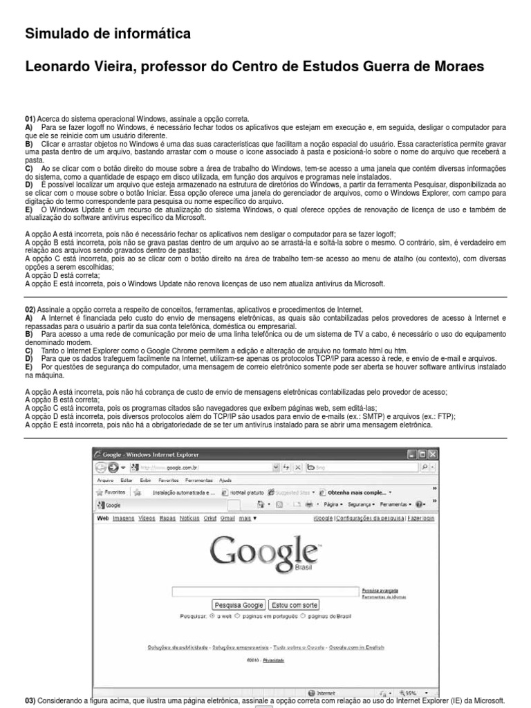 03) Considerando a figura acima, que ilustra uma página eletrônica, assinale a opção correta com relação ao uso do Internet Explorer (IE) da Microsoft.
