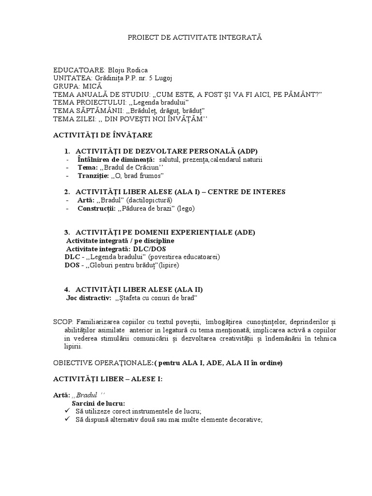 PROIECT DE ACTIVITATE INTEGRATĂ