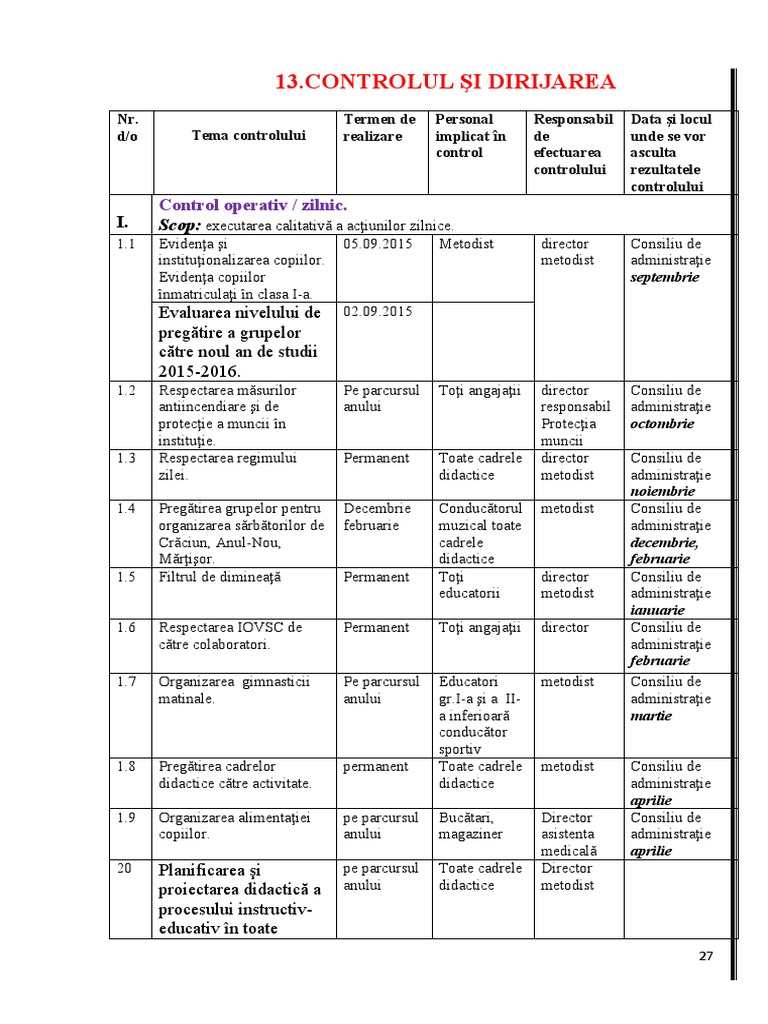 20 Planificarea şi pe parcursul Toate cadrele Director
