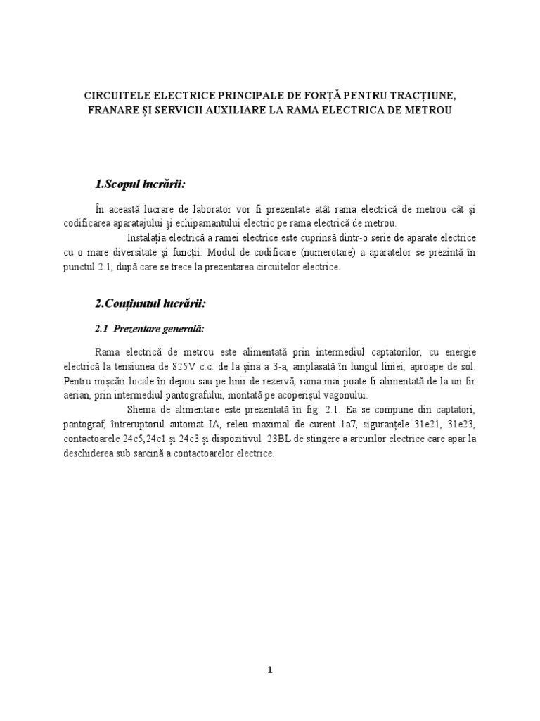 punctul 2.1, după care se trece la prezentarea circuitelor electrice.