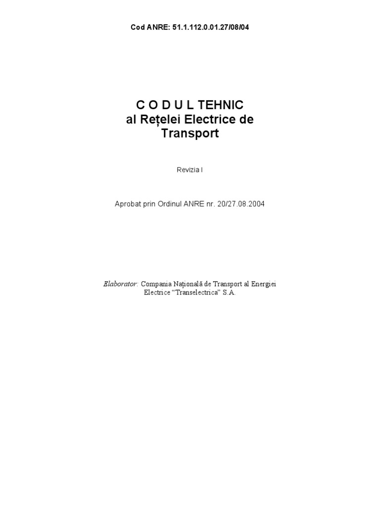 Art. 1 - Se aprobă Codul tehnic al reţelei electrice de transport