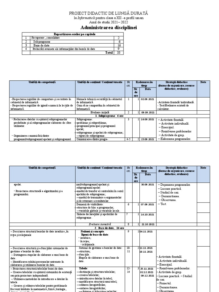 programul/subprogramul apelant și subprogramul Comunicarea dintre progra- 4-5 2 23.09.2021 Elaborarea programelor.