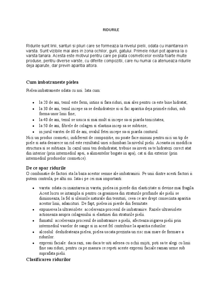 piele si asta deoarece un rid este rezultatul unei schimbari la nivelul pielii. Aceasta isi modifica