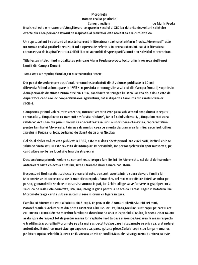 Un reprezentant importand al acestui current in literatura noastra este Marin Preda.,,Morometii” este