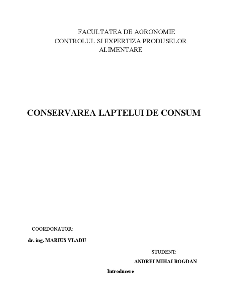 ➢ Conservarea laptelui prin pasteurizare si sterilizare
