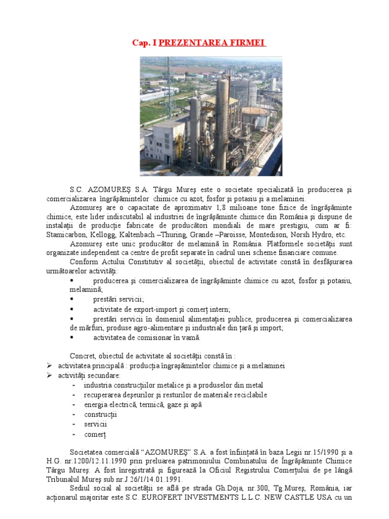 procent de 55,97%, urmat de alţi acţionari cu 24,97% şi de AZOMUREŞ HOLDINGS LLC