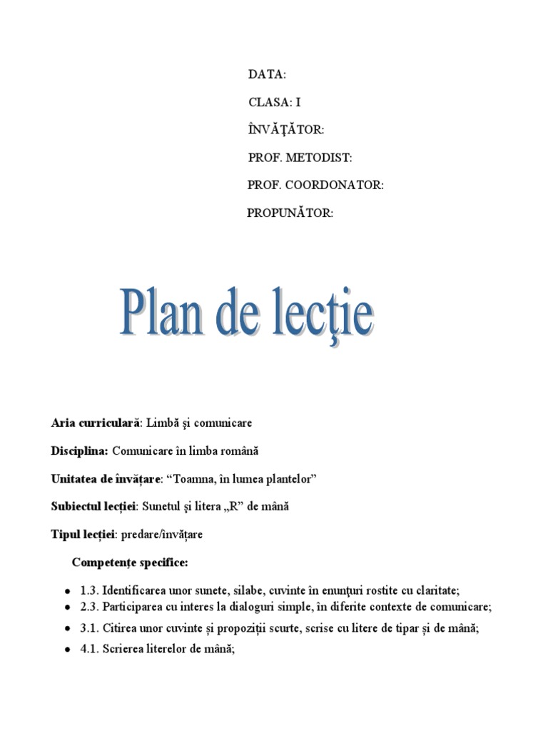 O3: Să dea exemple de cuvinte care conțin litera „R”;